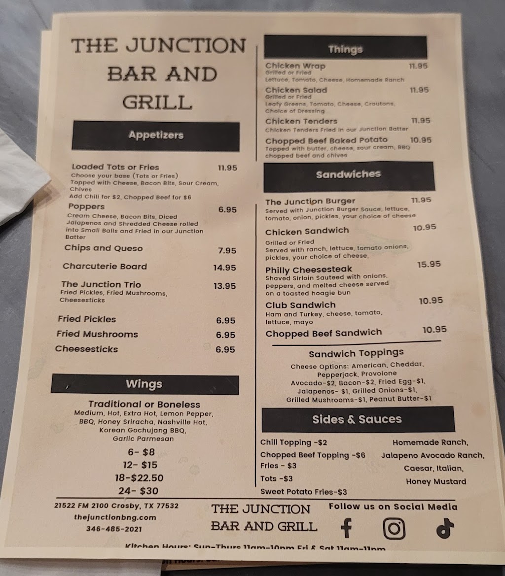 My wife got chicken wings and I had the Junction Burger. The food was delicious and the service was great. I gave them a 4 on atmosphere because I could faintly smell old cigarette smoke in the room. Other local bars are much worse than this was. It's a total turnoff to go eat somewhere and have to smell old cigarette smoke that permiates the joint. BTW I didn't SEE anyone smoking.