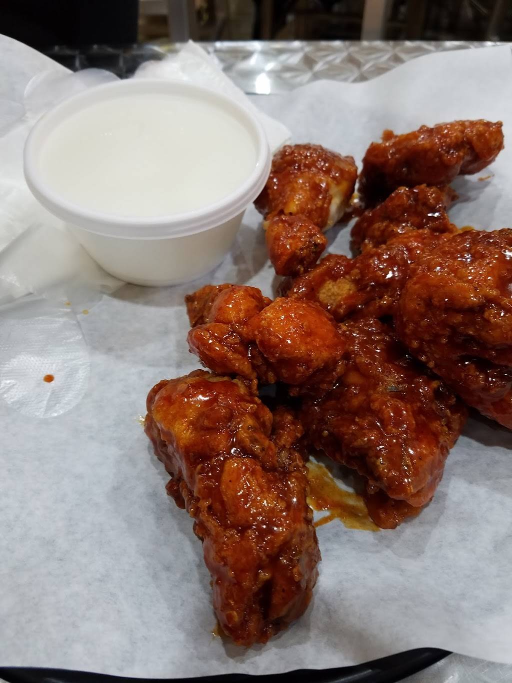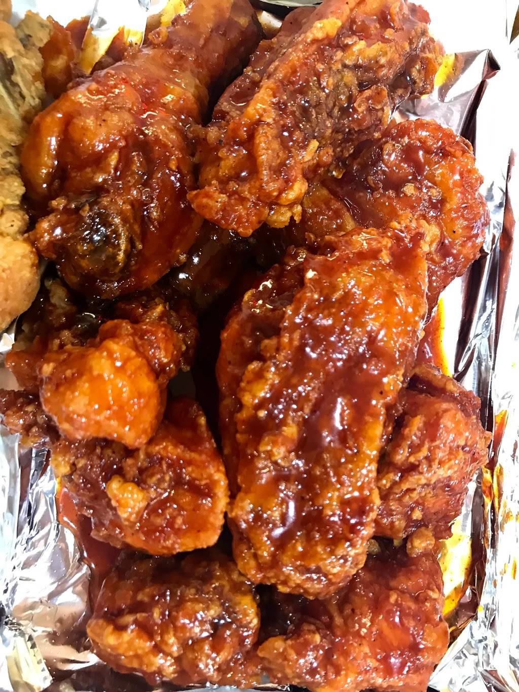 Awesome fried chicken. Had the 9 piece garlic chicken wings today and a strawberry bubble tea. Chicken was perfectly seasoned and the tea was refreshing. I have made several stops but this is my 1st review. Not sure what took me so long as this place has some awesome chicken. True, there is a bit of a wait but you are told upfront and it's because it's made to order and fresh. Highly recommended. 5 stars!!!