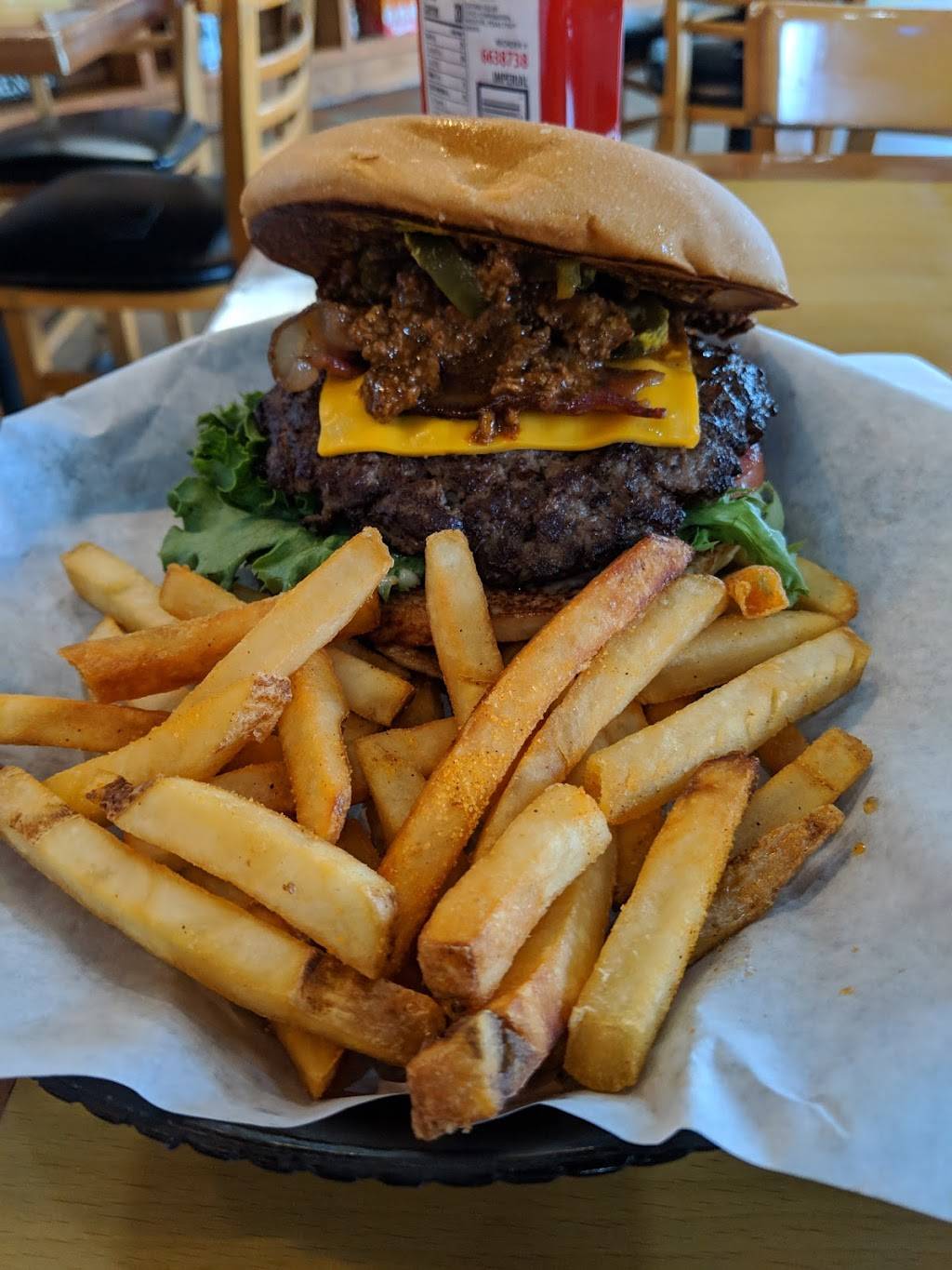 I had the two state burger. Lots of meat, good flavor. Wife had chicken sandwich she was pleased. It's too far to be a regular stop but, will be on our list should we be in the neighborhood again.