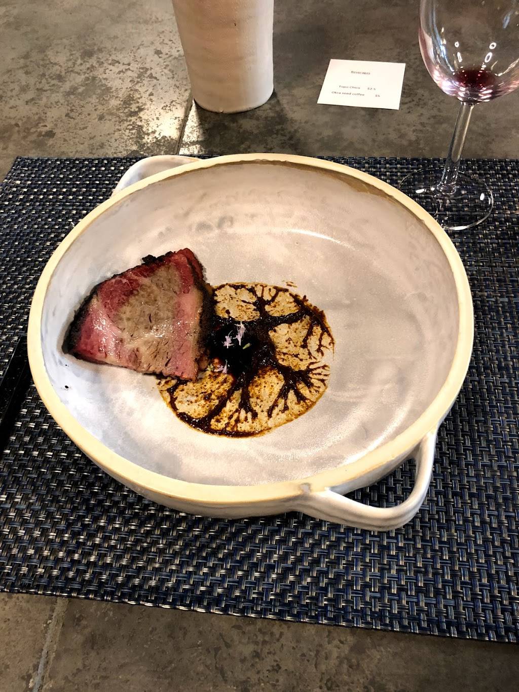 If you believe wallethub's assessment of Houston as the most diverse city in the US, then an evening at Indigo is a microcosm of that diversity. The seating arrangement allows for socializing amongst patrons while still providing enough individual privacy to allow for quiet one-on-one conversations. Chef Johnny's commentary on the inspiration and origins of the dishes added a personal touch to the dining experience. Every dish was unique and purposeful in its composition. The high counter seating kept us eye-to-eye with the staff and chef, making conversation and communication much more easy and natural. According to the staff, the menu changes roughly once a quarter, with a vegan flight being a year round option. If you have not tried it before, highly recommend the naturally decaffeinated okra bean coffee with dessert.