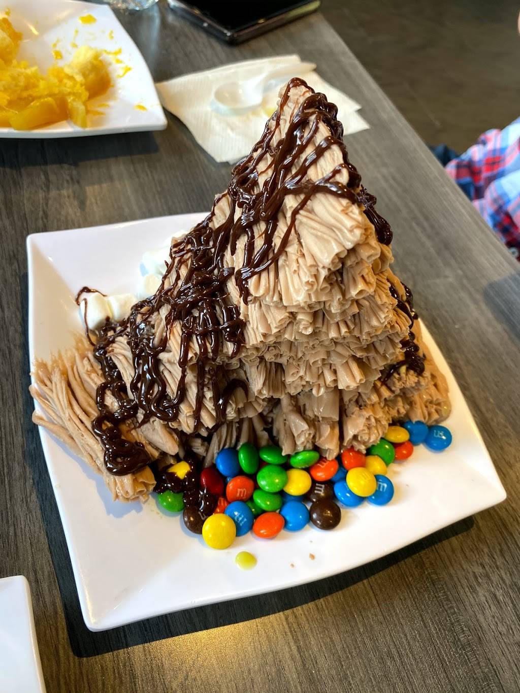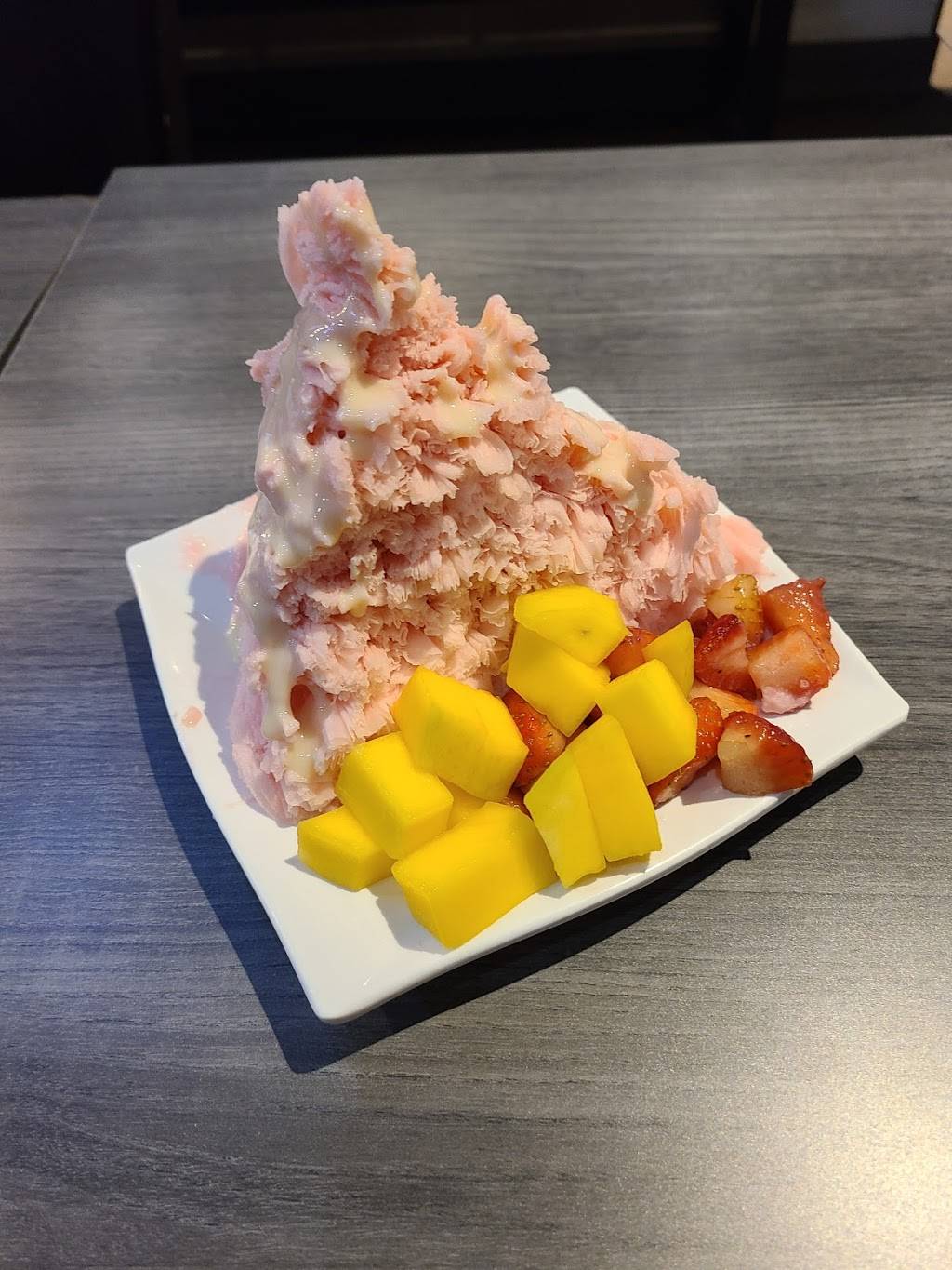 I was surprised how loud it was inside, because the person who was making the dishes had to manually change the ice and shave it down herself, and I could see she was stressed because of how many people there were inside. I felt bad for her because she was doing a lot of things, but also there should have been social distancing in place especially since the shop is so small. I would come here again, but I would be wary to come at a time where there would not be as many people, and especially so that there isn't so many people crowded in around in a small area. Other than that, I am liked the décor inside and the items we got were delicious.