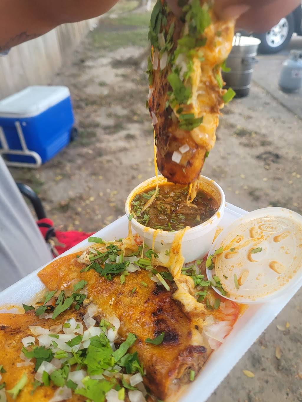 Best quesobirrias on the Northside! Worth a try if your in the area. Quick and simple menu, line moves fast, good thing when your on a short lunch break. They sell out fast so order ahead of time