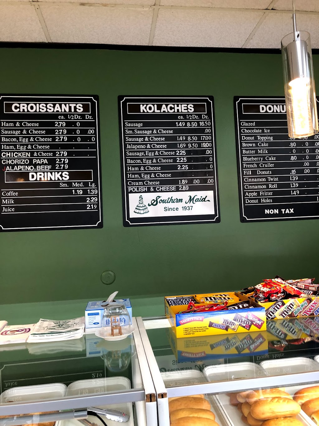 I love Southern Maid Donuts since Hurricane Ike. It serves best donut in Chinatown. The donuts kept fresh even hours after I bought them, unlike another donut chain Shipley 400 feet away. These delicious and fresh donuts make my family happy. Oh, they have kolaches, too! Be an early bird, they close at 1 pm.