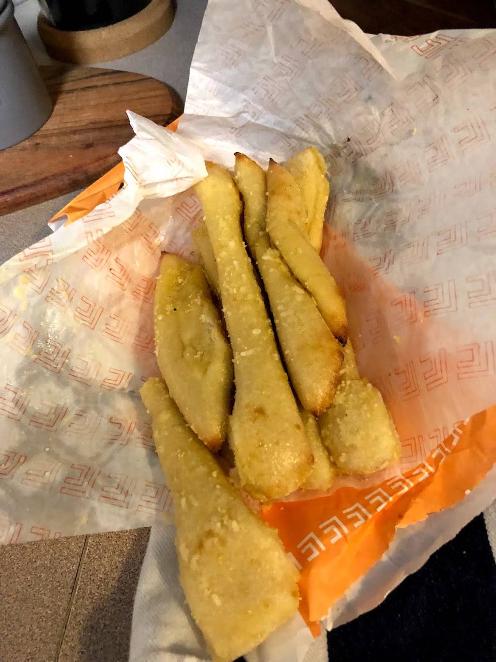 First time at this location. Ordered Veggie pizza with pineapple. Service was quick, cashier was polite and bought pizza out to car. Pizza was delicious.