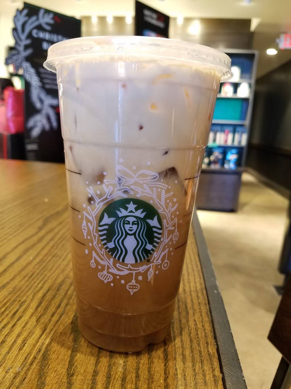 This location has a super congested parking lot with a crazy long line in the drive through! We were pleasantly surprised that the store was fairly empty with no one waiting to be served. Our drinks were tasty and service was very friendly!