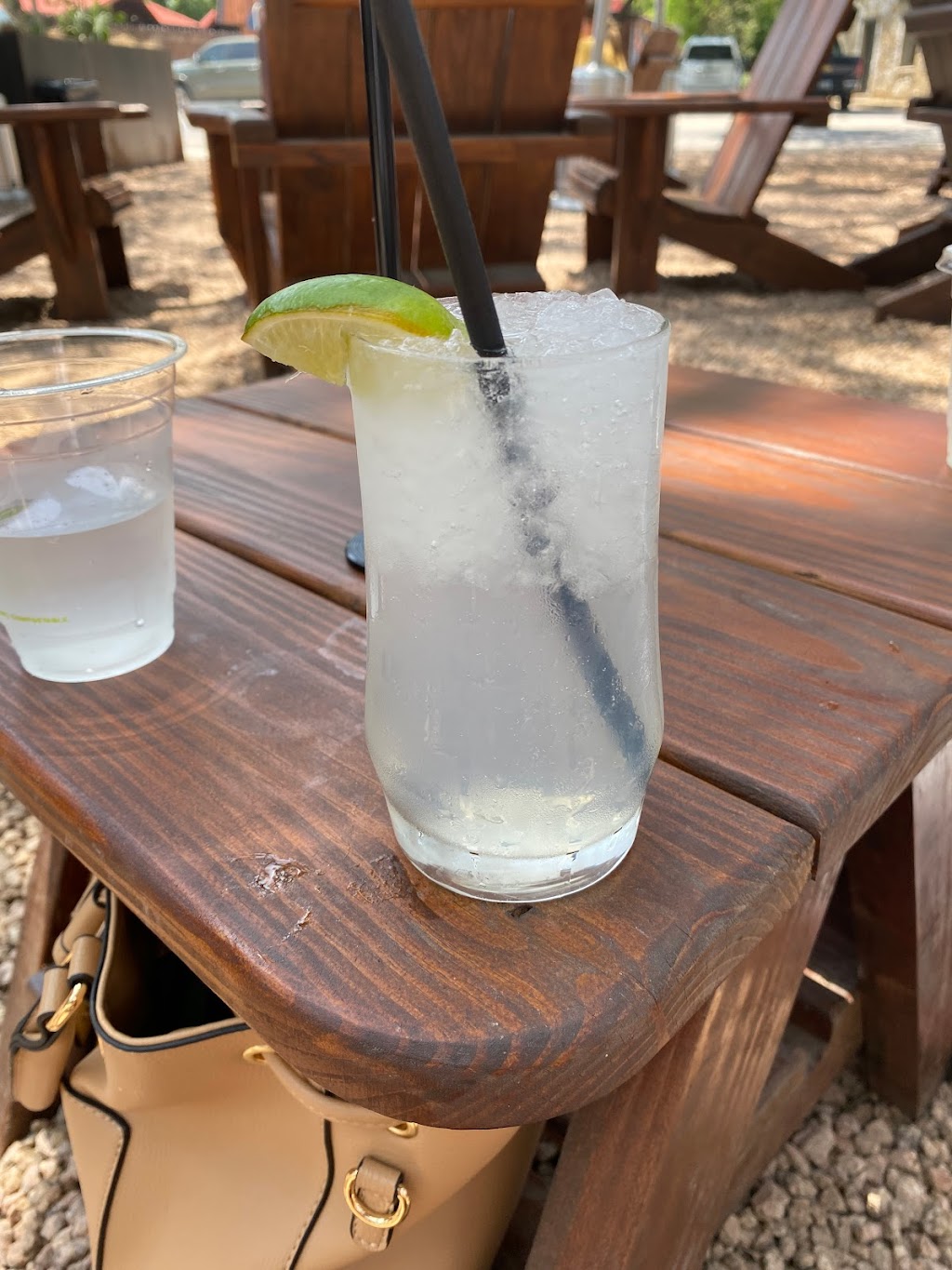 Perfect location for a bar and bite to eat! Especially for those husbands that are drug on their wives wimberley shopping extravaganzas lol. We didn’t eat, but sat down for a drink. The margarita was delicious and the staff was super nice!