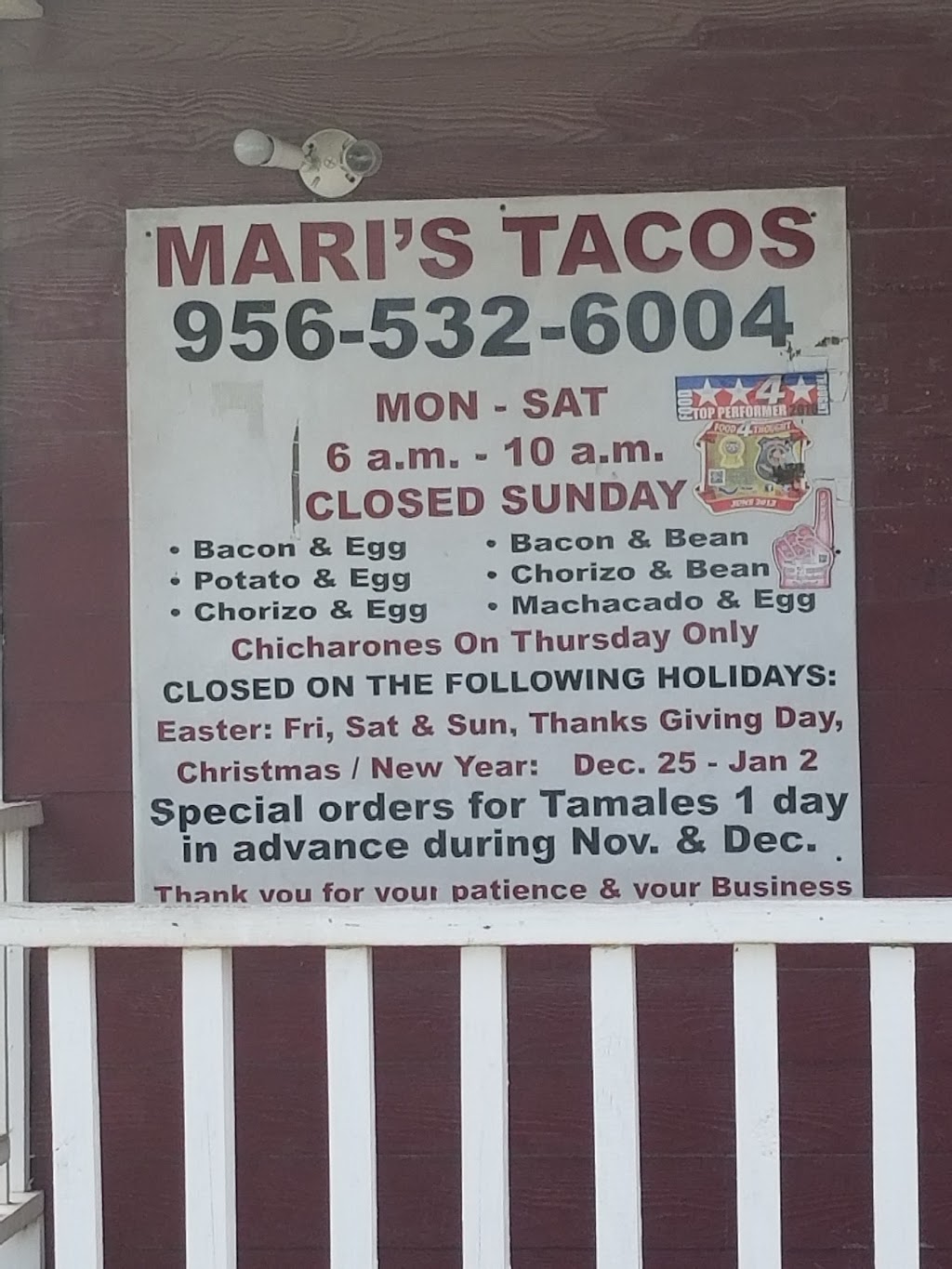 BEST tacos in Donna. Taste great and very filling. I personally like the bacon and egg. CASH ONLY so be sure to bring some.