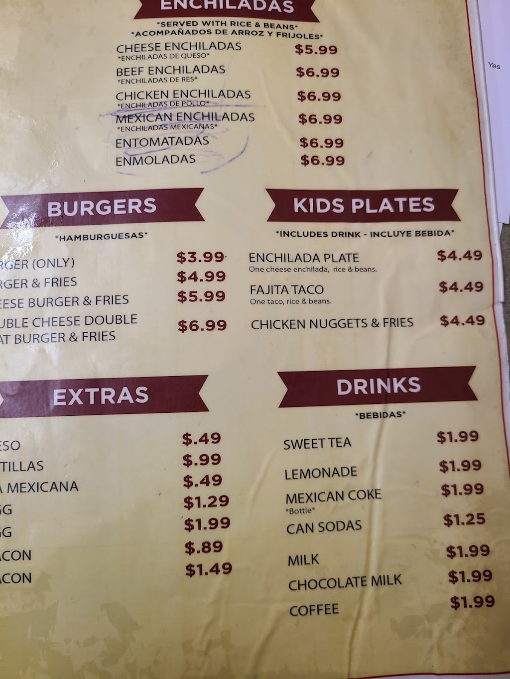 The huevos rancheros were okay for the price, for 3.99 you get 2 eggs, bacon, beans and potatoes.