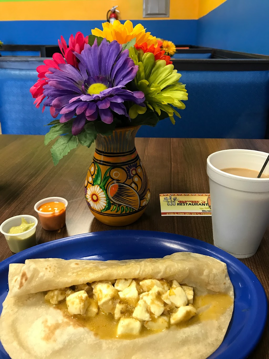 I like the morning tacos, flour tortillas and very rich stews.
