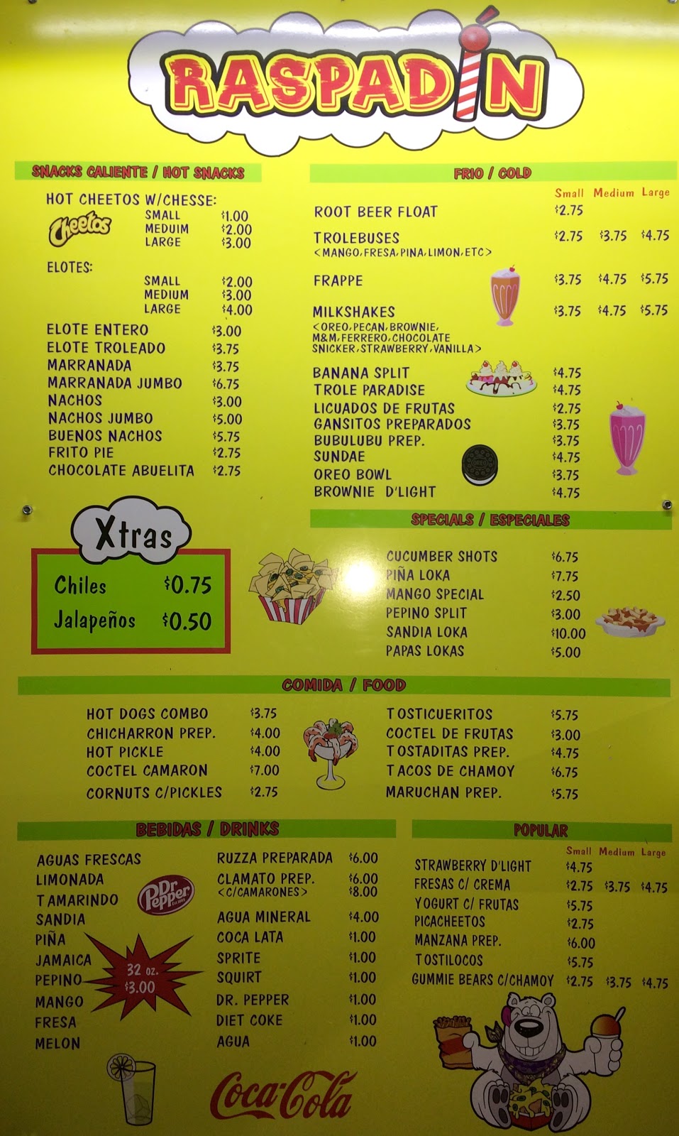 Has a variety of good munchies, though I was looking for sugar free raspa options. No luck. The family all found something great so I conceded to opt for anything healthy they might have. Glad I picked the fruit coctel.