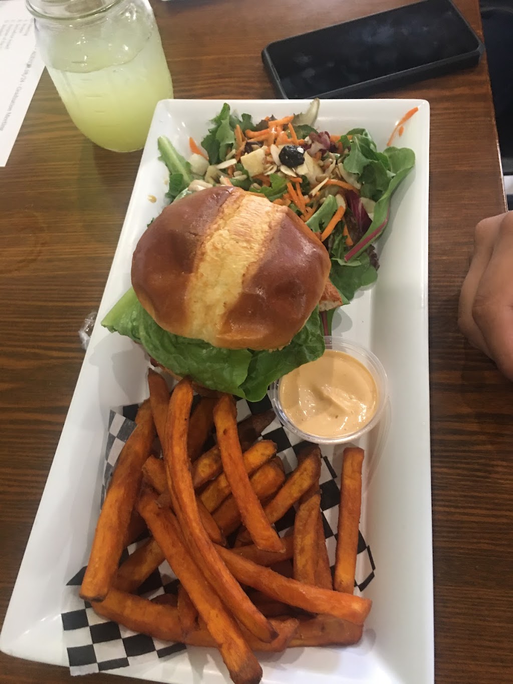 Great food! Healthy too! My girlfriend had the Nancy Poke Bowl. It had crab, cooked salmon, cucumber, brown rice, and spicy mayo. She loved it and is already planning what to try next time. I had an Almond-crusted chicken. It was crispy and the texture was perfect. Like a fried chicken that oddly felt light. I am looking forward to our next visit. I'm thinking of the Gyro for next time.