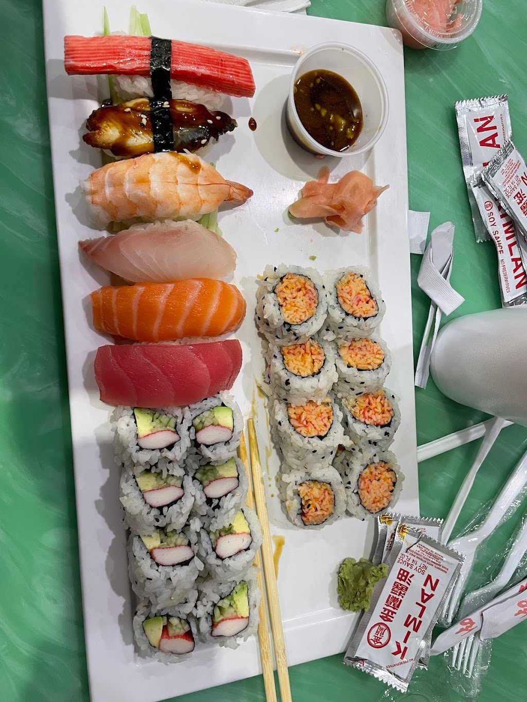 Most excellent food I had shrimp fried rice and California roll and spicy salmon roll. The sushi rolls were made fresh.