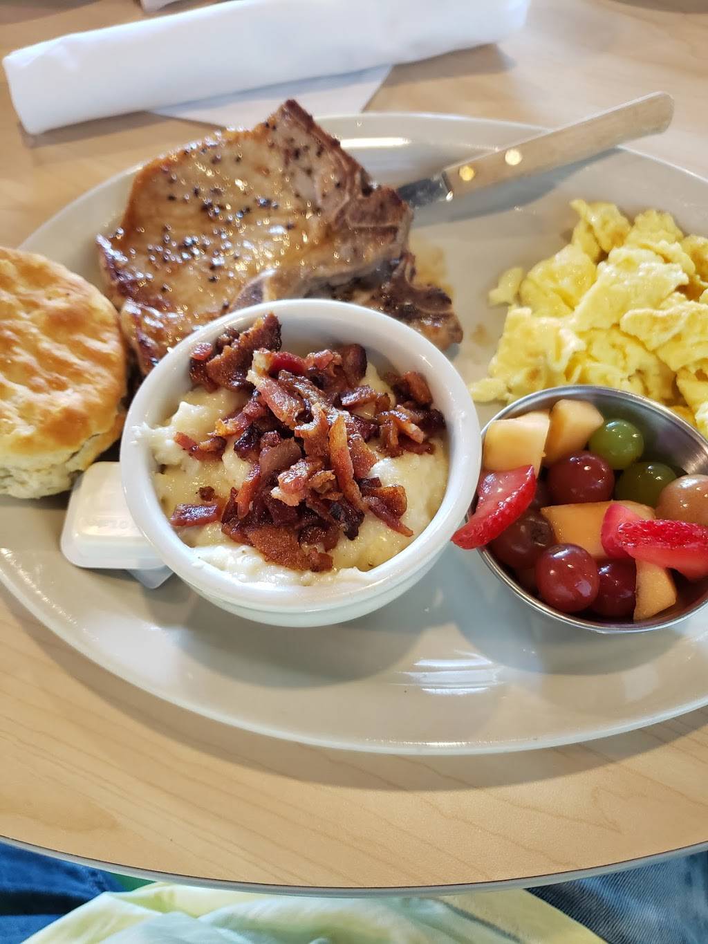 Excellent food. Every person in my group ordered something different and wow! It was a table full of good food! The shrimp and grits were AMAZING. The cowboy was delicious looking! I got the chicken salad sandwich and it did not disappoint! The broccoli cheese soup had a nice little kick to it