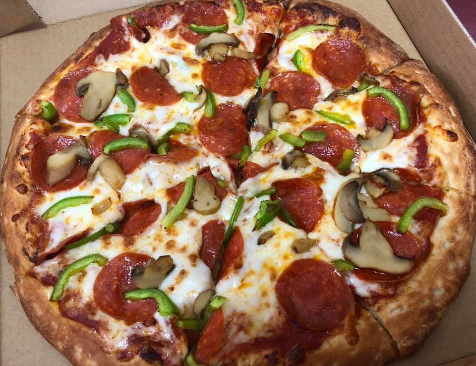 Very good pizza bottom was very crisp, the crust was soft and chewy, the toppings were very tasty! The pizza was very hot from the oven! Be aware this is a drive-thru only pizza place! Yes that's my actual Pizza that I got!