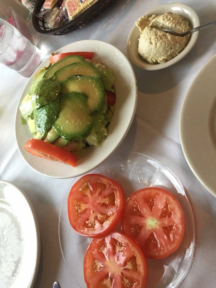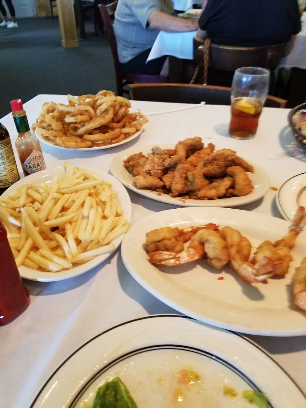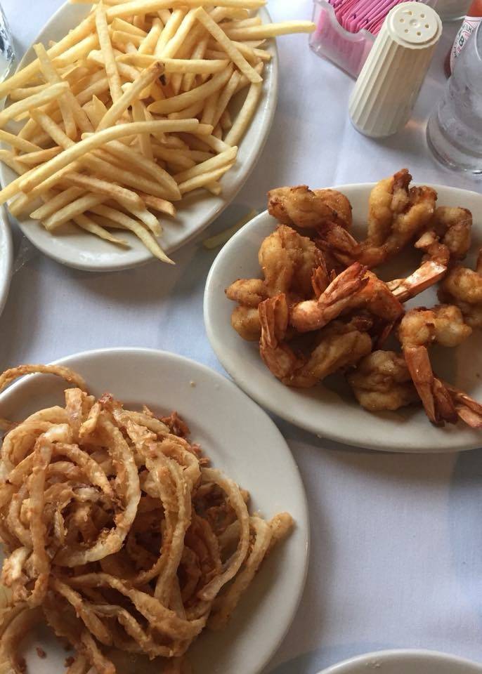 All fried food except salad, which was awesome...fried shrimp and fresh fried onion rings were delicious. Fried fish and french fries so-so. Not sure if they have any baked or broiled food since you don't get a menu. Just fried stuff (not real healthy food).