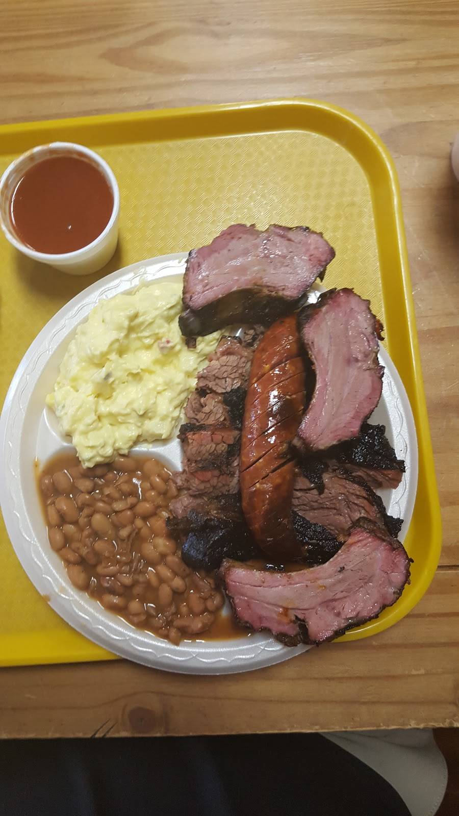 I had the brisket plate and portion was good for the price. The brisket was perfect but the sauce was not so much. Personal taste on the sauce. I would recommend if you need a quick bite when passing through.