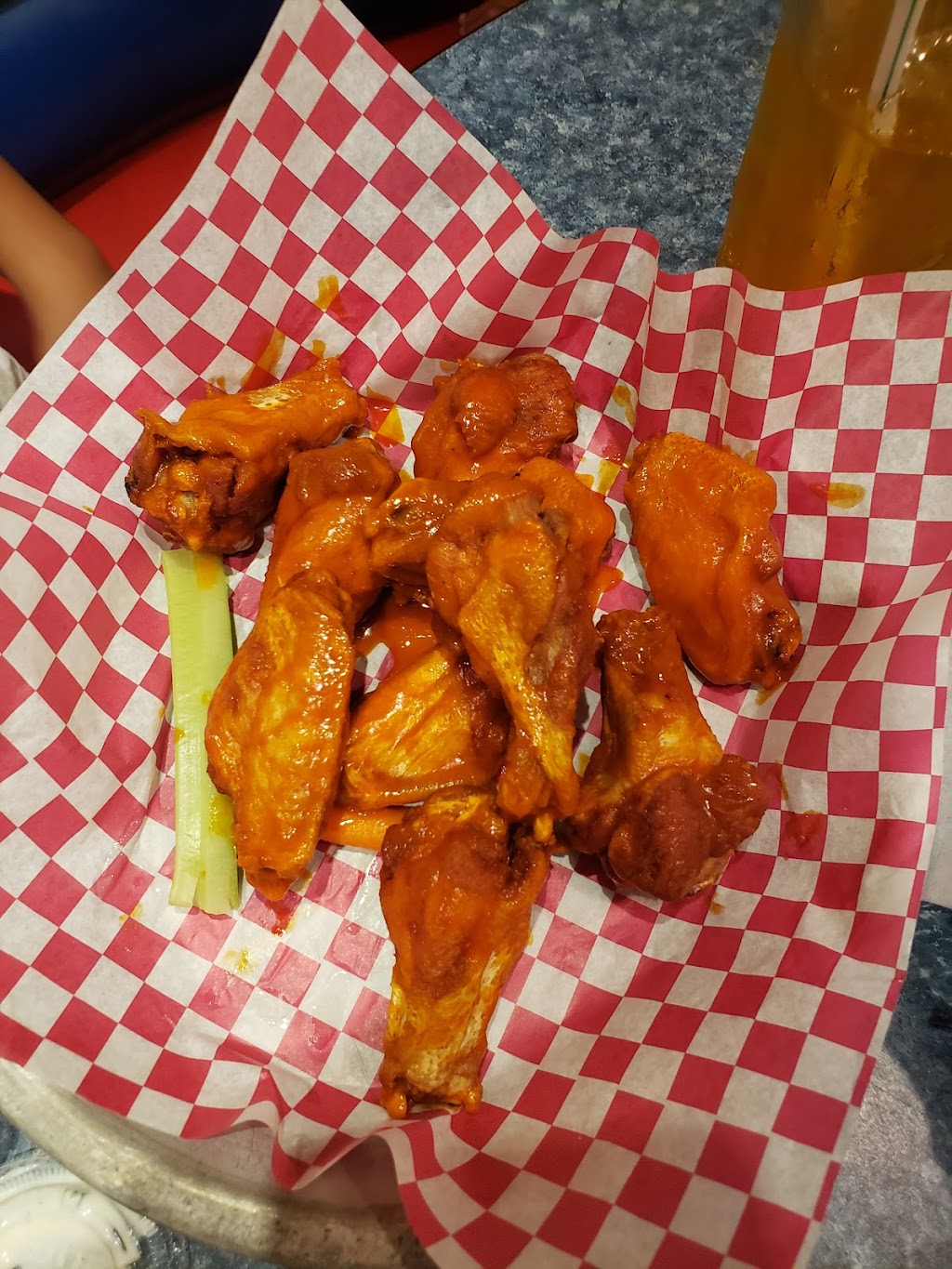 We had wings and adult beverages for lunch. The wings are naked and fried then tossed in sauce. They were served hot and were crispy on the outside but moist on the inside. Perfect for our taste. The seasoned crinkle fries are great too. The menu is small but has a wide variety of choices. We sat at the bar to eat. The bartender was very knowledgeable about the menu since that was our first time there. We will definitely be back and recommend to our friends. Nice open seating arrangement and good atmosphere.