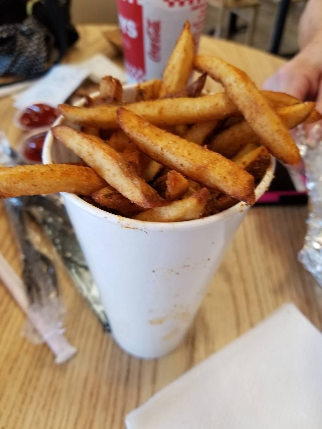 Five guys is amazing, food is always spot on! I'm really writing this review for the cashier Ashley S. That was the best service I've ever gotten and she was helping literally ever single customer. She goes out of her way to help everyone. Offering cajun and salted fry samples to the new customers ahead of me. I could go on and on. This woman deserves a raise!!