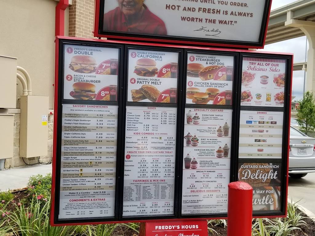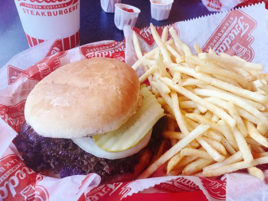 The food is great. The Steakburgers are not the same old same old burgers you get at other places. Go to Whataburger, McDonald's or where ever and all the meat/burgers are pretty much the same, only the toppings are different. At Freddy's the Steakburgers are thin, crispy and delicious. The fries are always crispy unlike many other places with soggy fries.