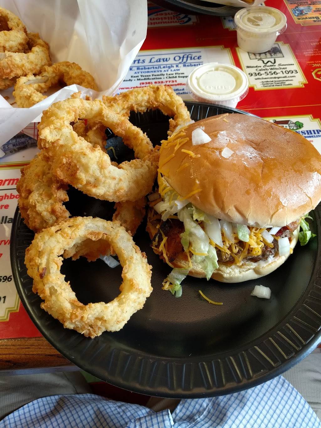 Nothing fancy just good food..family owned. Fresh cut steaks. Chicken fried steak is awesome..Huge baked potatoes. Burgers are award winners. . Recommend to all. .