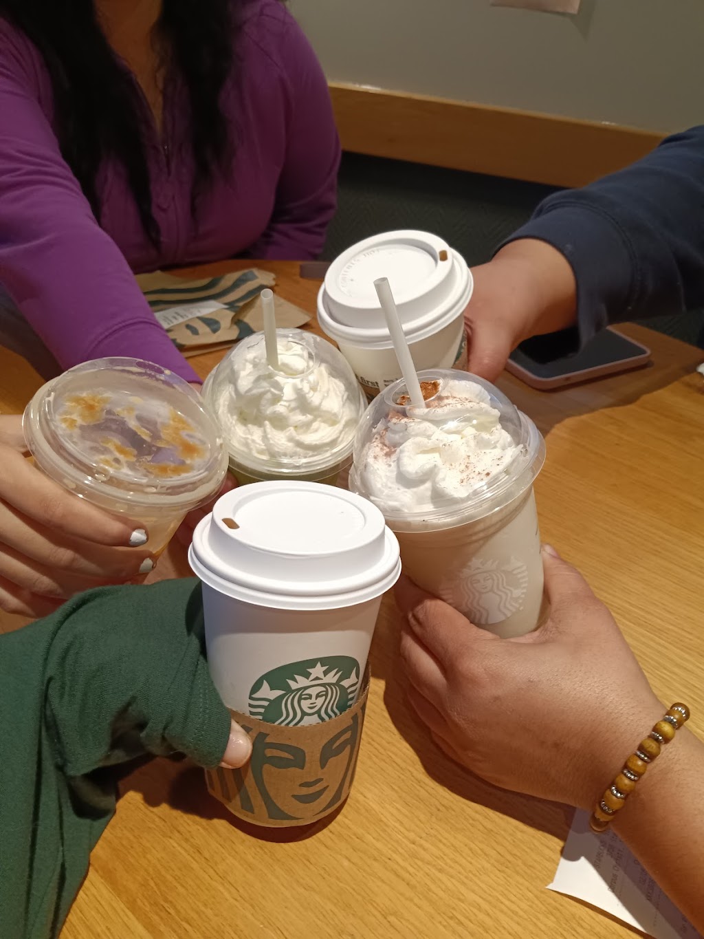 As usual, I loved my visit to this Starbucks location. The atmosphere was calm, warm, and inviting. The staff was pleasant, friendly, and knowledgeable. The service was great, our drinks were completed in an acceptable time, were the correct temperature, were made correctly, and the taste was above average. I would definitely recommend this place and will return myself to patronize this establishment again.