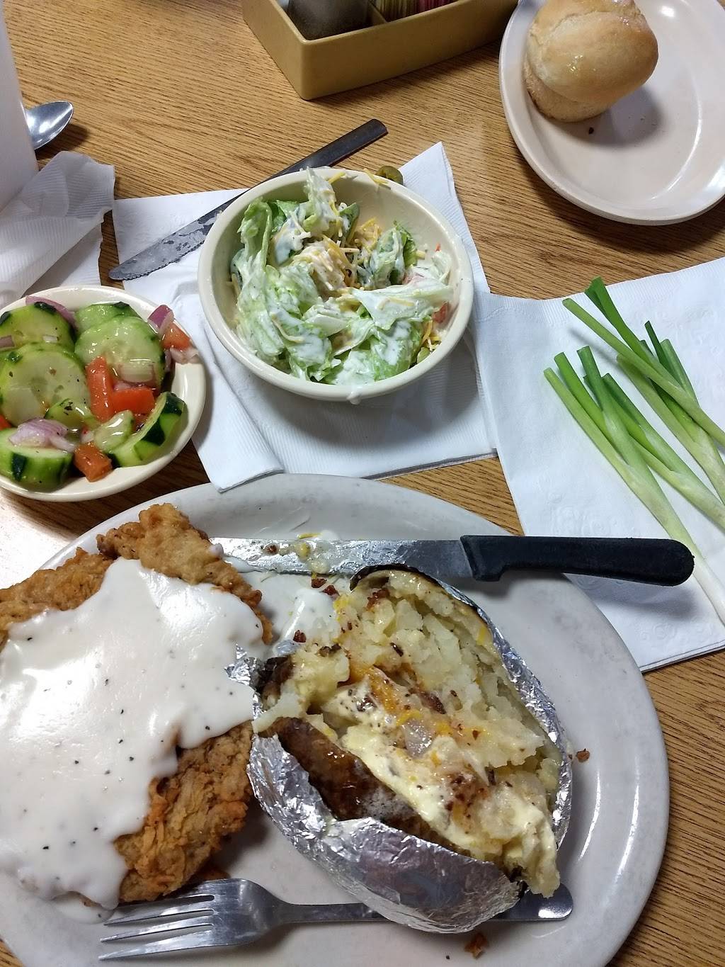 The food and service was great!! My husband had chicken fried steak, and I had steak fingers. They were both tasty! The decor was perfect, and the restaurant is very clean! Our waitress was very sweet, and she packaged cake up for us to go, since we were too full to eat it there.