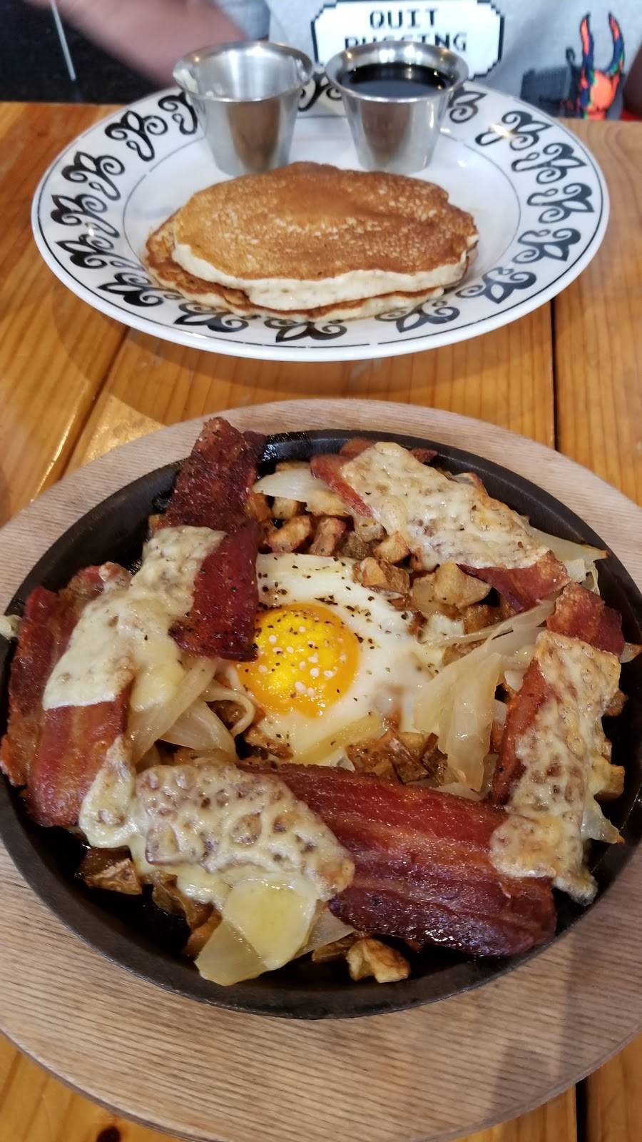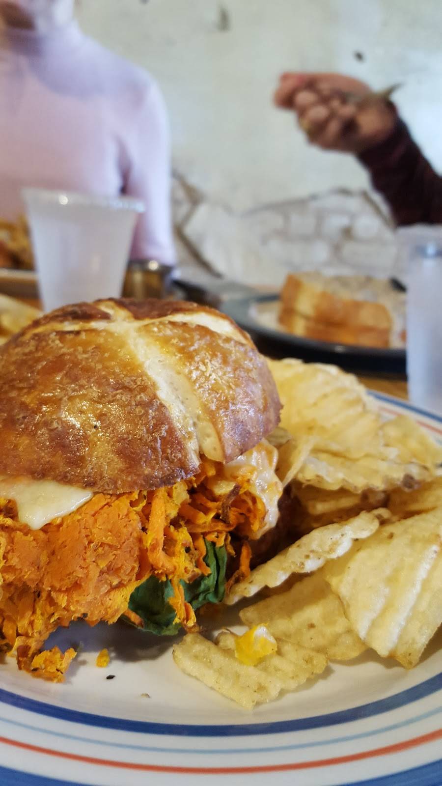 The food here was absolutely amazing! We really enjoyed it and will definitely be back to try other delicious foods. However, we did have to wait quite a while to be seated. We expected a long wait for a Saturday morning, however, there were several booths and tables consistently open that no one was being seated at. We only had a party of 2 so we expected to get seated much faster than we did. Especially when we were eyeing all the empty booths that we perfect for just 2 people. Not sure if they didn't have enough staff to clear the tables quickly or not, but it was a little disappointing. Again, the food was delicious though. We had the patty melt and the one-eyed-Willie along with their famous fries. I would also recommend their apple cider. It was the PERFECT remedy for a cold rainy day!