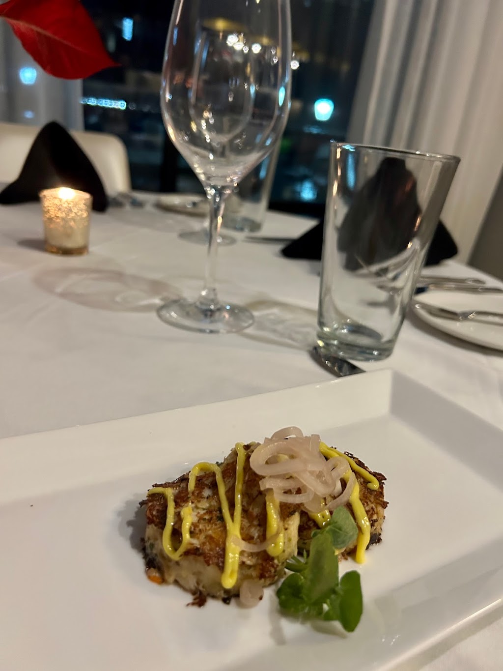 I was very curious about this restaurant, what I can say is that it is Phenomenal from start to finish. I am still daydreaming about some of the dishes we had. The restaurant is cozy, elegant and romantic, definitely one of the most spectacular views in Dallas, it was worth the drive from Frisco. I opened with Crab Cakes, but what definitely caught my eye was the Prime Bone in Ribeye, it’s delicious.