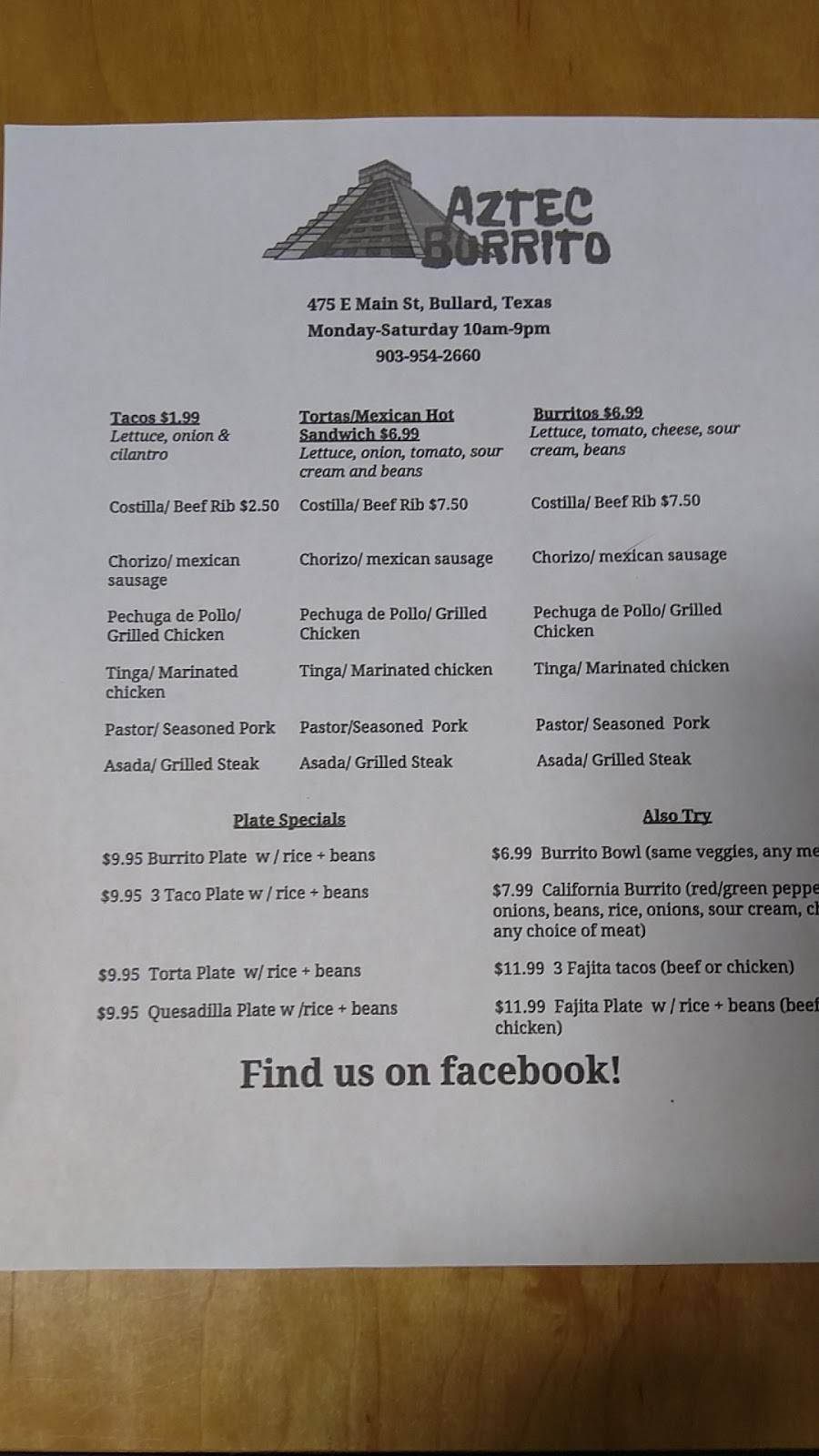 | Website: | http://www.facebook.com/Aztecburrito/ |