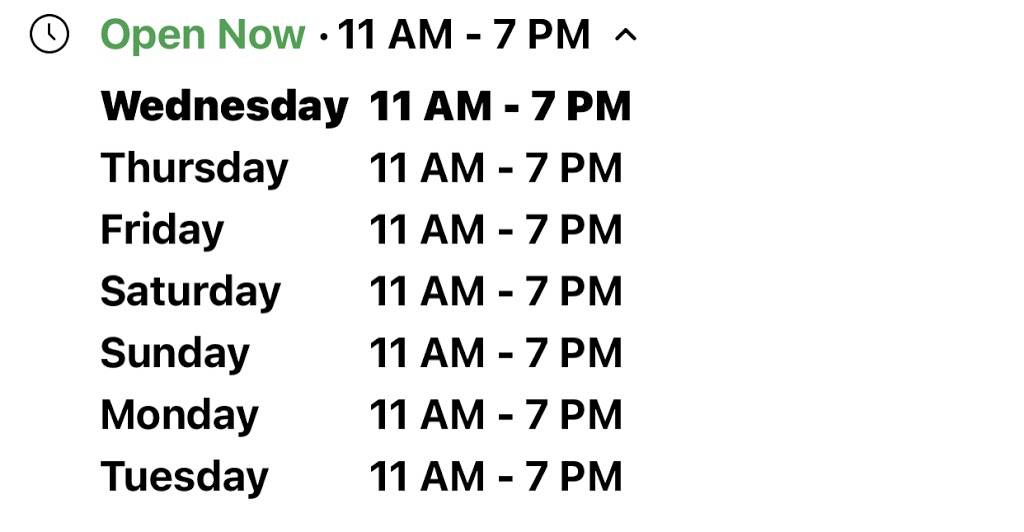 | Wednesday: | 11:00 AM – 7:00 PM |