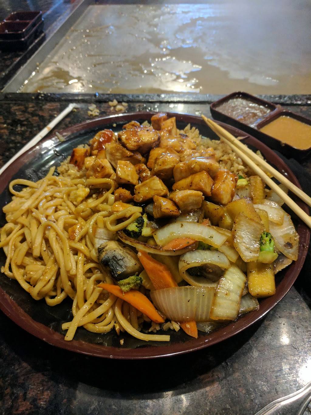 Third visit to this location, second time sitting in the booth area vs the hibachi area, it's always a lot more personal over there when it's a family dinner. Waiter (Danno? He's hilarious, you'll know when you get him) made the night so much more enjoyable, from the jokes to the birthday song to just keeping us all entertained. Sushi was delicious (and not overpriced like some places in larger cities), along with hibachi bowl/meal. If you're not a heavy eater, you will have leftovers. And always get your sake hot.