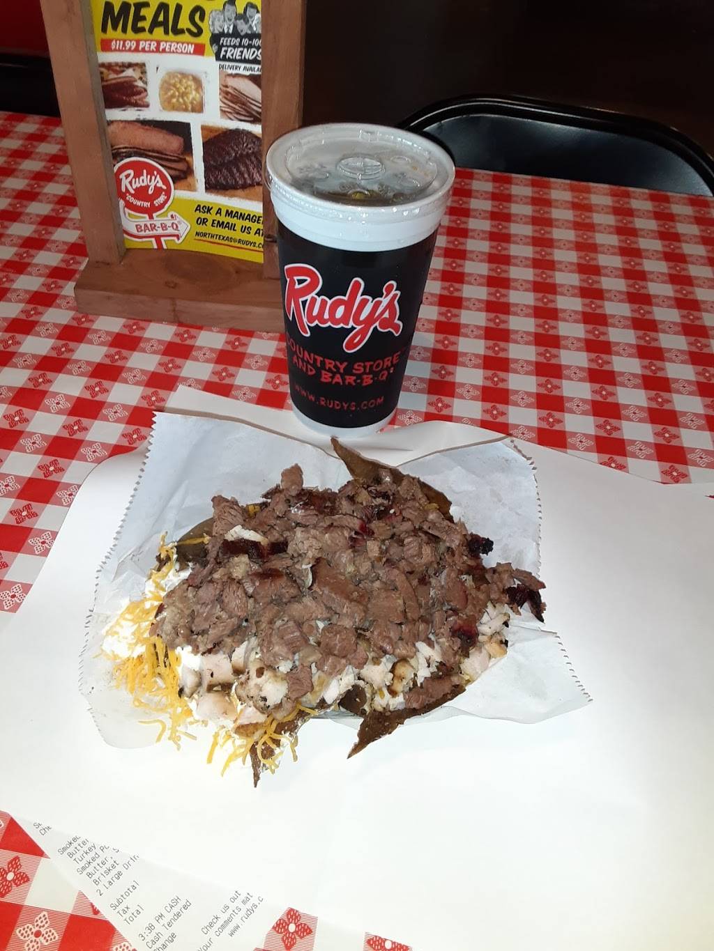 Ate here for the first time today. And the BBQ was good and it's consistent with the place in Arlington over by I-20. I purchased some Rudy's BBQ chopped beef, baby back ribs, some moist brisket, and potato salad. They have a condiment bar with sliced dill pickles, sliced onions, jalapenos, cherry peppers, packaged sweet relish, mayo etc. Claudia (see pic)was the manager who indulged me talking about barbecue at the counter LOL. She is from the old Arlington and remembered me. So that made me feel good as a customer. She is a real sweetie pie.