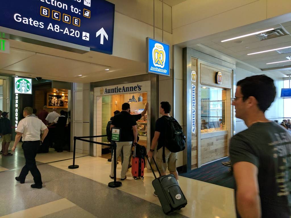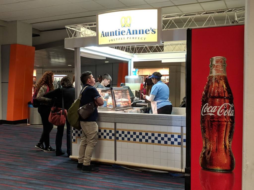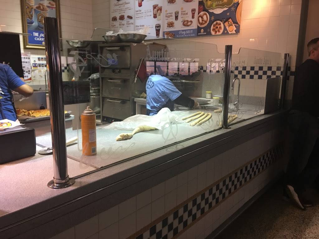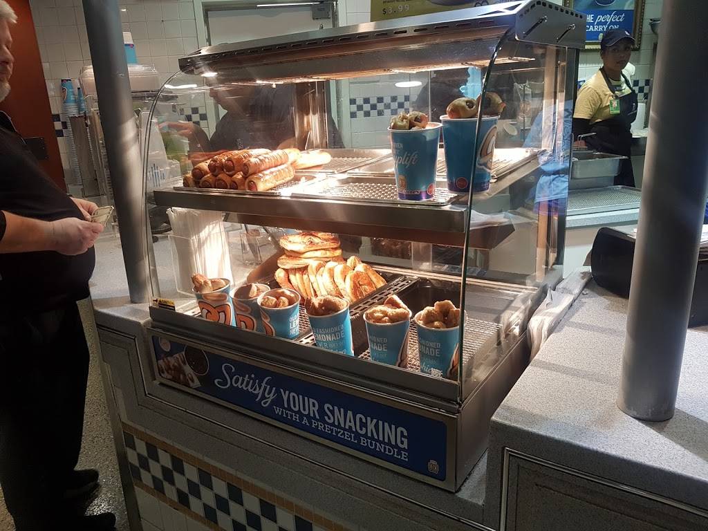 About as unpleasant an experience as you can have at a pretzel stand...but hey, it's the airport, and a lot of grumpy people pass through here so maybe the staff is jaded...and underpaid and under appreciated. At least that's what it looks like from what I can tell. Anyway, the pretzels and pretzel bites are okay. They taste about the same as in other locations. Maybe slightly more greasy. What I don't like is that the cheese sauce is now room temperature packets. In the old days it was warm and that was nice. Oh well. Pretzels anywhere are still carbs. Carbs can be comforting. So if you're at the airport and the rude staff rattles you, just find solace in the innocent and playfully salty pretzels.