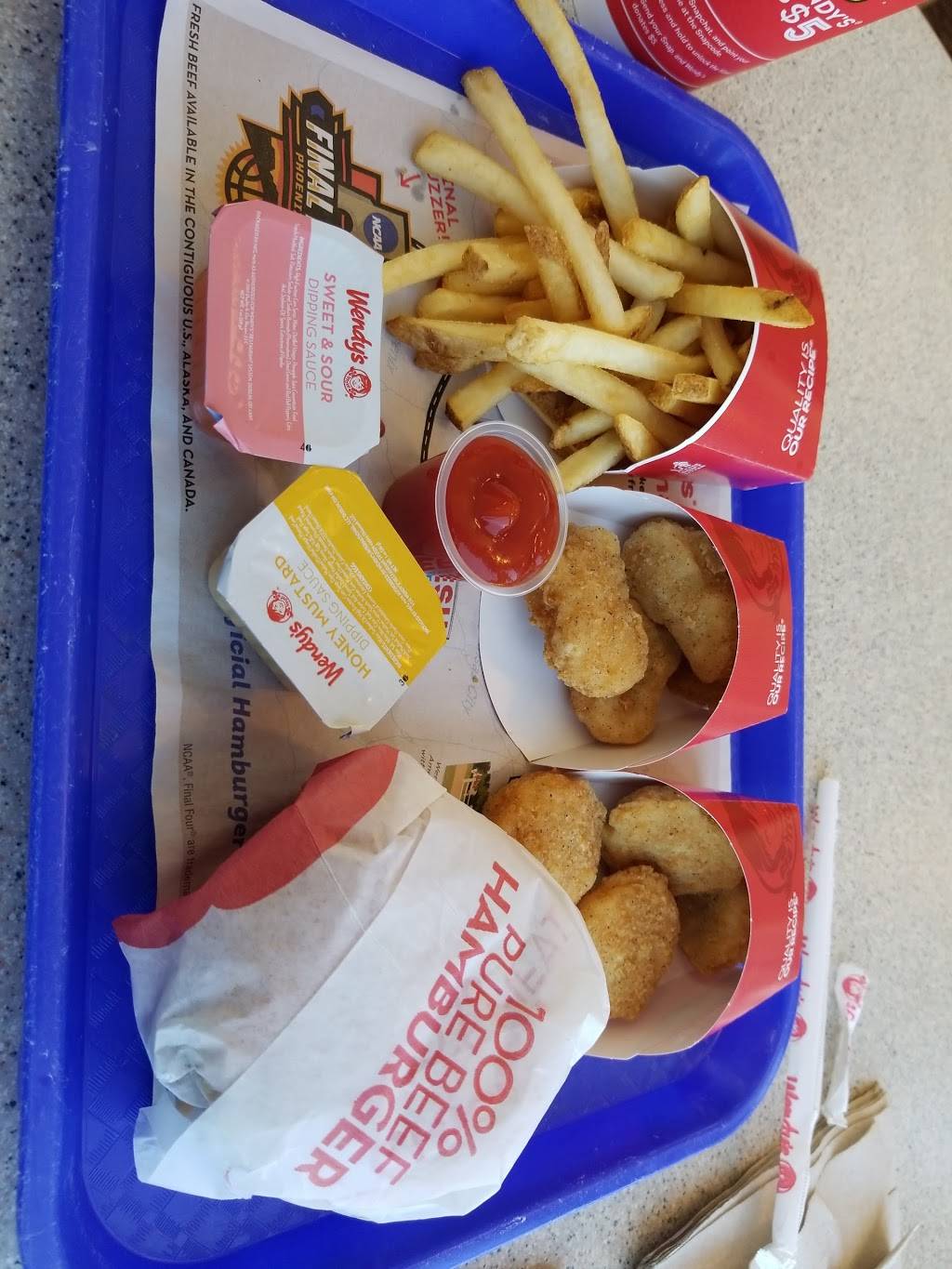 Usually I don't go to Wendy's, for a couple of past experiences I've had. But came here late night and was pretty amazed. Burger was good,hot and fresh, fries were barely warm though.