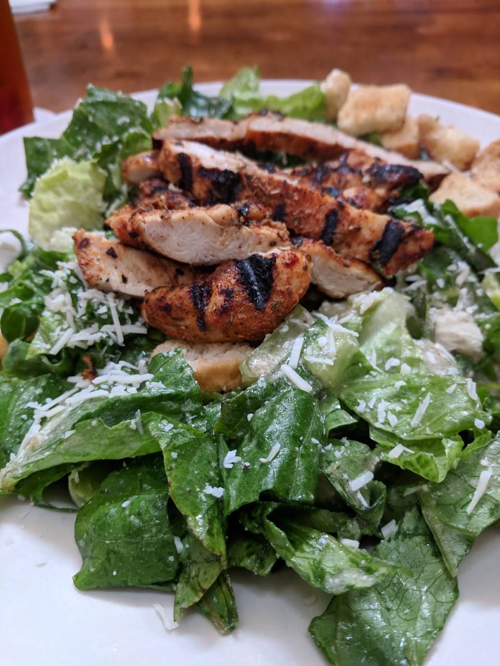 Very nice patio, waitress was great, but the food wasn't my favorite. I ordered the fried mushrooms and the steak salad. Fried mushrooms were pretty good and there were plenty. The steak salad was just okay. My steak was definitely not med-rare but I also understood that this was not a steakhouse.