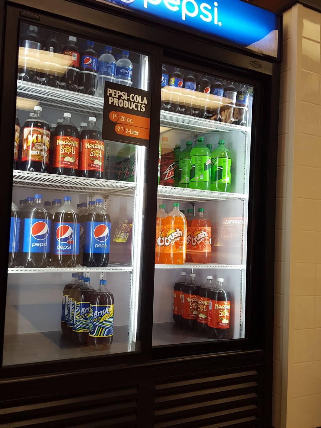 This location is OK. I walked in and ordered a pizza and cheese bread. I ask him why there's no Diet Pepsi in the refrigerator. He said he must have forgot to fill it. So I wait there. And then it's done, he hands me the pizza, but forgets the cheese bread. So I have to remind him of that (and he's like, oh yeah). Also, the pretsel crust pizza had some yellow cheese (I thought it only had mozzarella). But then he says there's a four cheese blend that he puts on it. Not sure, but whatever.