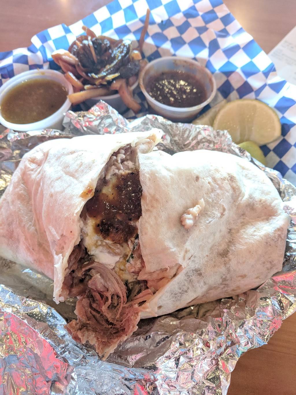 I arrived at El Taco H on a Monday at 1, sat down, placed a to go order, and was on my way by 115. The woman I talked to was friendly and the food is delicious. I had carnitas tacos and brisket tacos both of which were excellent. The rice was good as well.