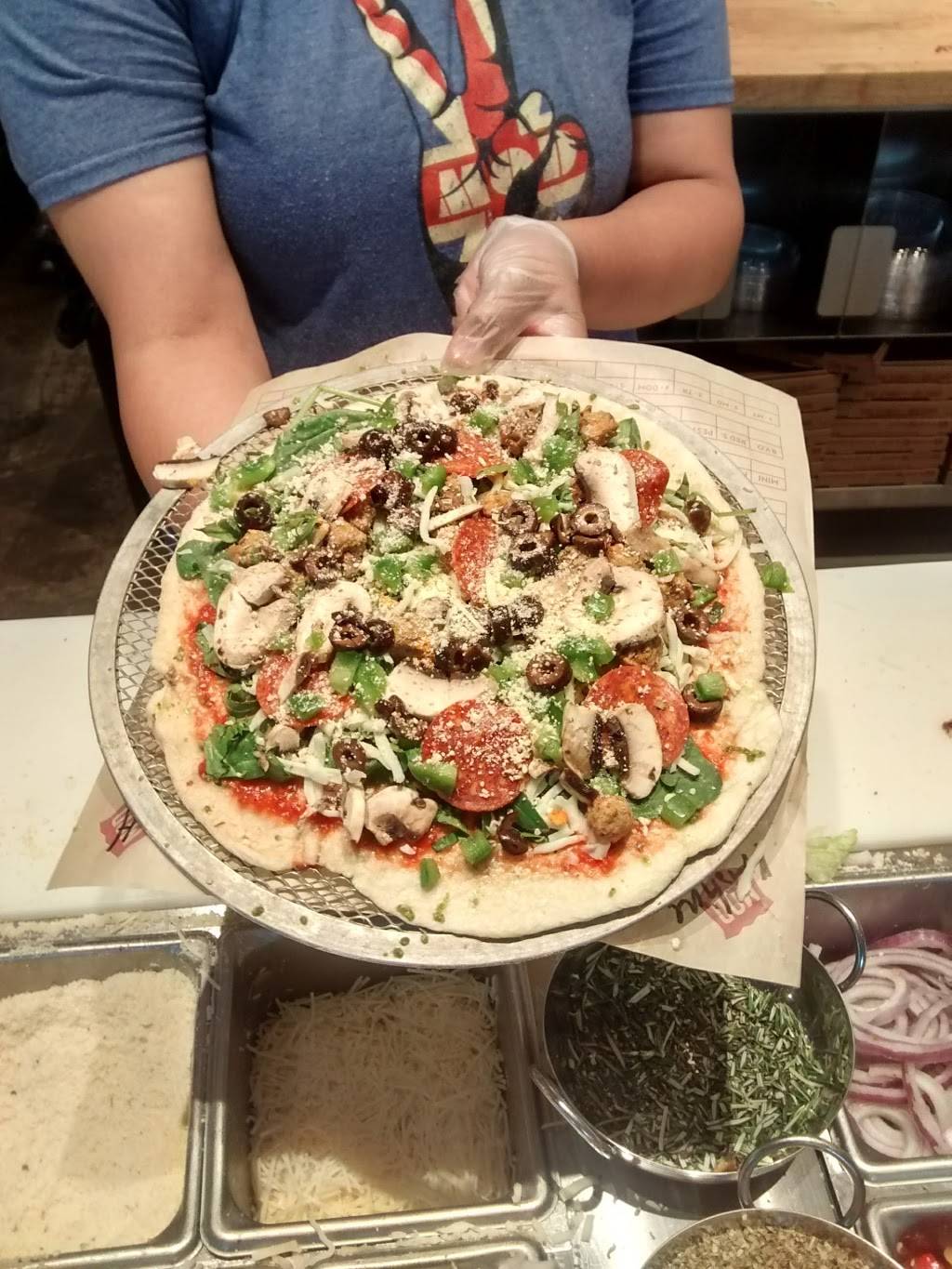 Gluten free and dairy free options! The staff are very friendly and fun when creating your pizza or salad. There are a lot of great toppings options if you want to create your own pizza, but the standard choices they have on their menu are also great. They’ve got really yummy drink options like their special lemonade.