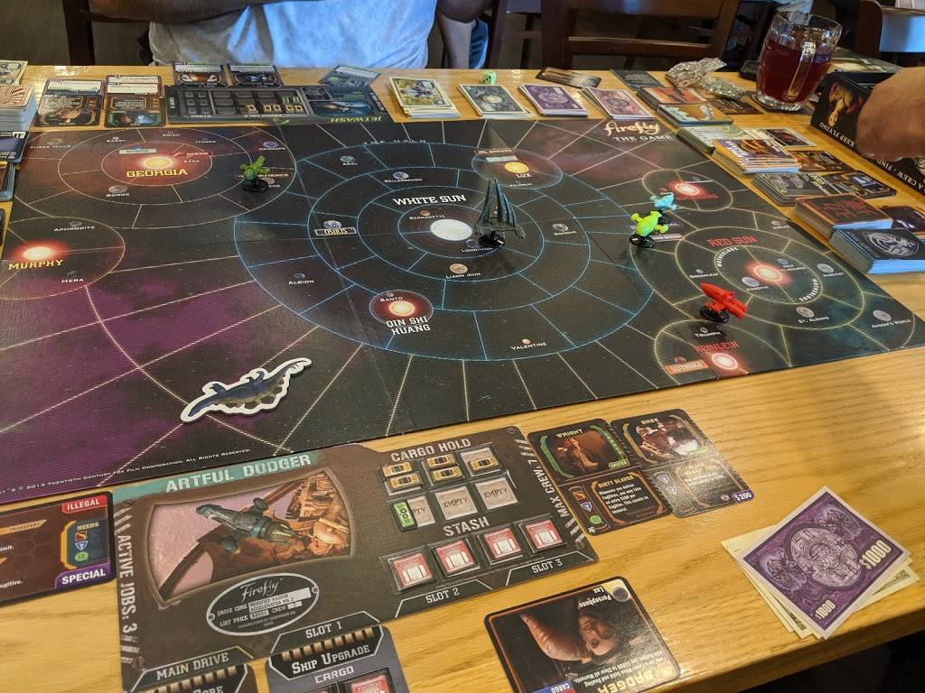 The concept for this place is amazing and decently executed. If you love to play board games/card game’s at a local store this place will be the best of all worlds. Better tables, seats, good food, plenty of various games to buy/play, and serves alcohol. If you are looking for a restaurant experience this will not be the best place for you. It is definitely targeted towards gamers who want to play and have access to good food and drinks. So don’t expect high chairs or other normal restaurant focused comforts. This is a gaming store at its core.