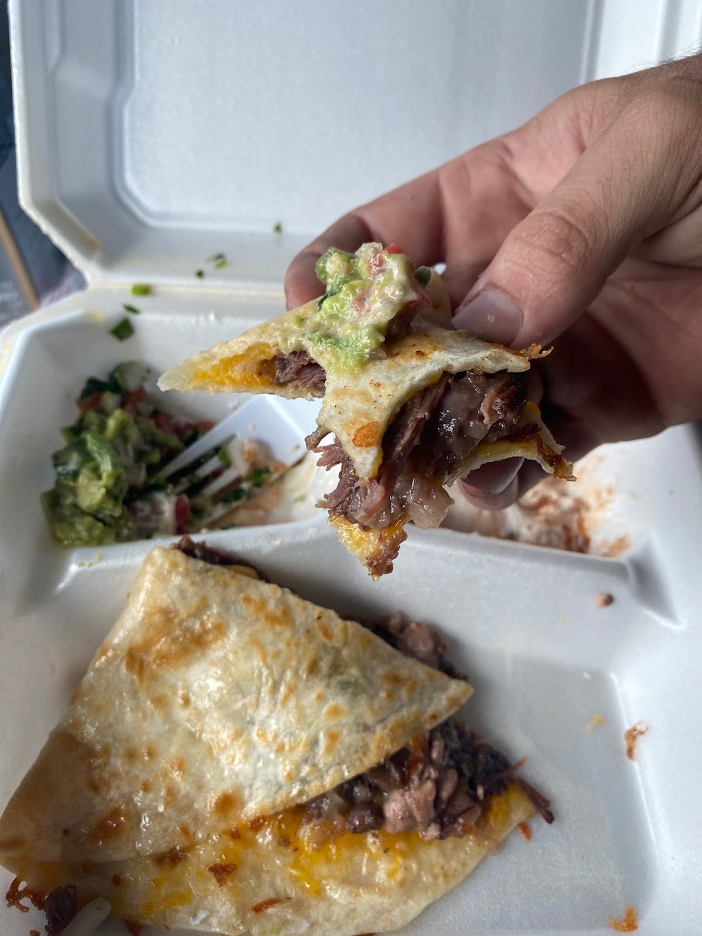 Ordered barbacoa quesadilla and two carnitas tacos. Tortillas are so good and fresh. The carnitas was seasoned and extremely juicy. The barbacoa was seasoned beautifully and perfect mix of fat and lean meat. Pico and guacamole was fresh. Salsa could have more heat but overall food is awesome!
