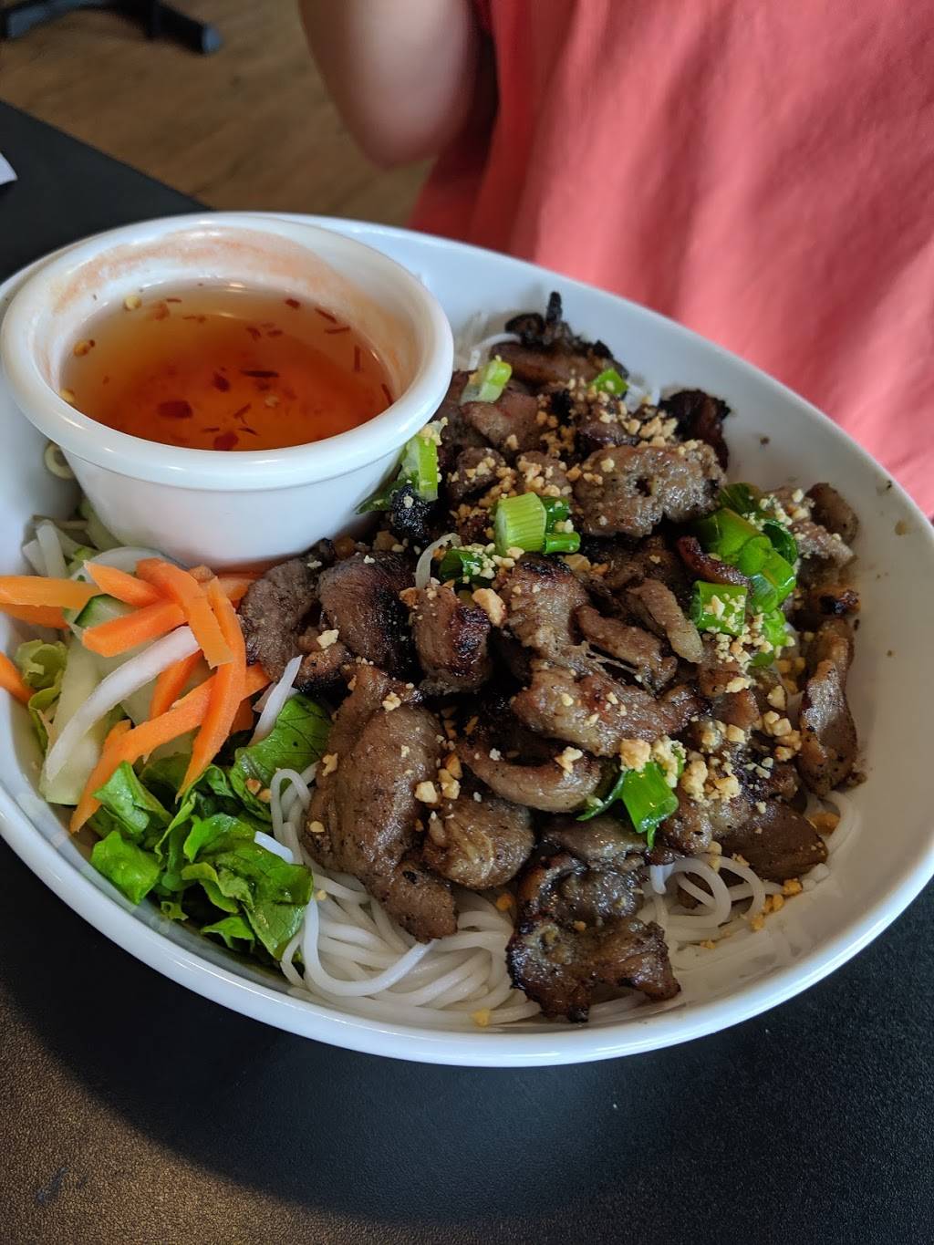 I recommend the lemongrass beef vermicelli bowl or the spicy basil fried rice.