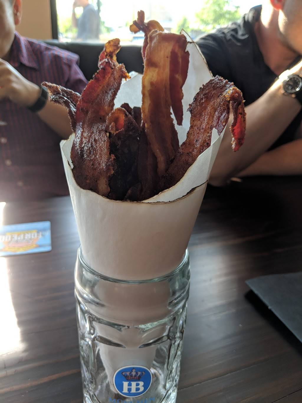 First off service was great. However, they were out of four different beers I attempted to order off the menu; the fried pickles were good but was a small portion, order two if you want to share with more than two people. The flat bread came with cheese that was not melted and the tomato sauce was sour. They also ran out of candied bacon.