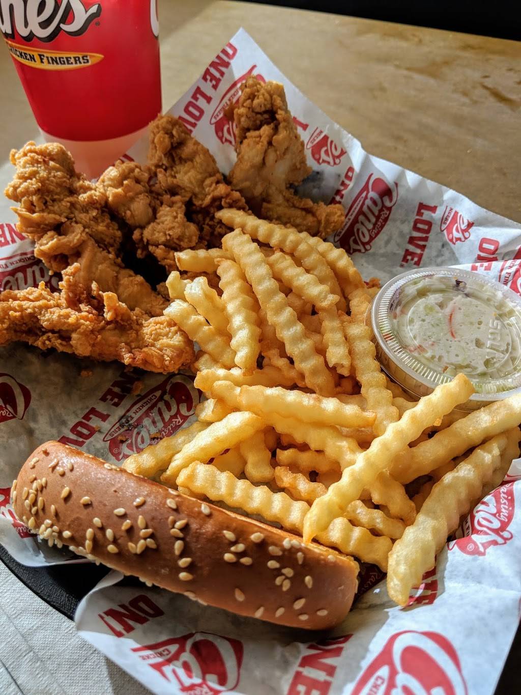 Raising canes is your ideal chicken fingers spot. Today this location was extremely fast & efficient. Not to mention the food came out smoking hot & fresh. Definitely my favorite chicken finger spot in town!