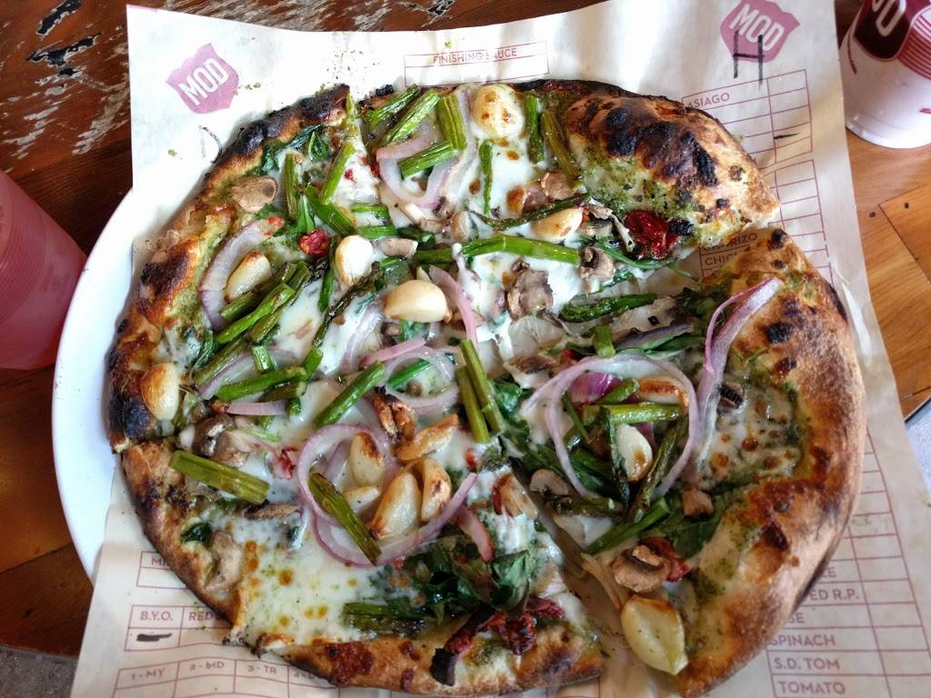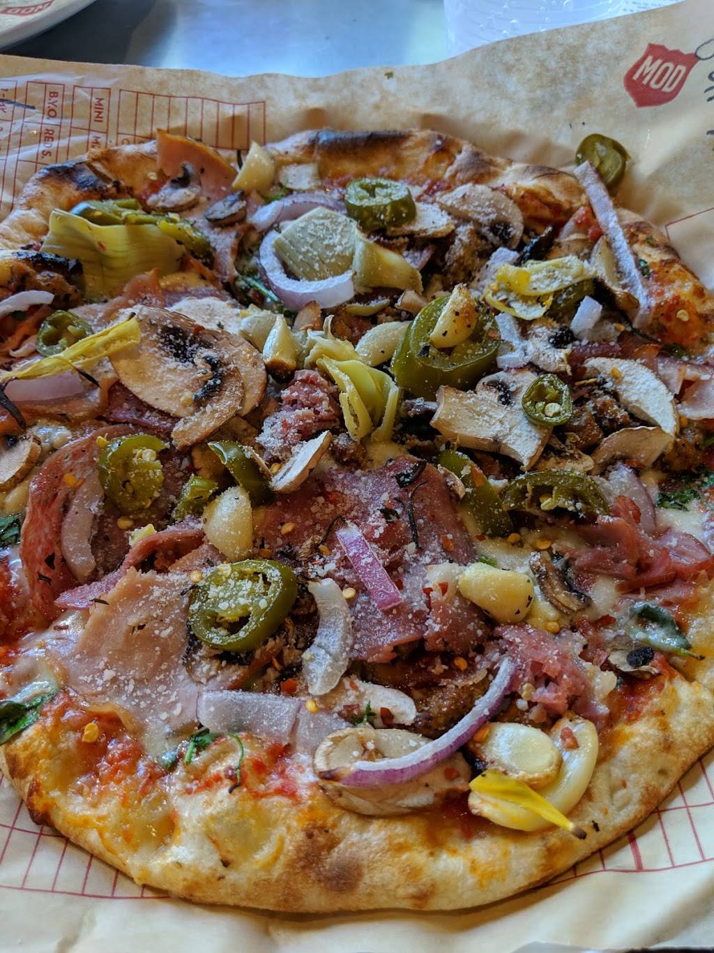 Like the MOD one price pizza with as many toppings as you like. The only thing is toppings are one layer not covering the pizza at all and don't get it piled on as you might think. Lemonade was refreshing and space accommodated a volleyball team. Staff was very helpful and friendly 5 stars for them.