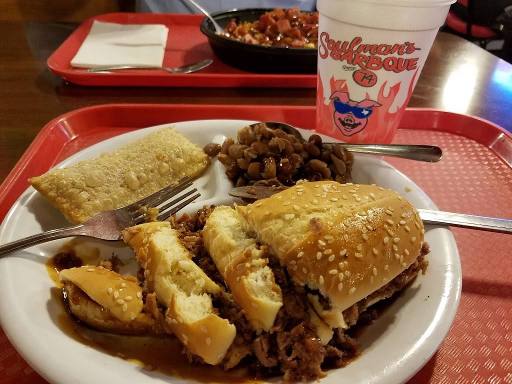 Nice atmosphere and people. You order off a line and everything else is self service. I had the soul bowl which is sausage and chopped pork, beans and cheese over corn chips. I added jalapenos and pickles. It was good and filling. Most things seemed a tad expensive and the standard side portions were small. It was however conveniently next door to the truckstop. Other menu items looked good. I don't think it's quite as good as other destinations but it works.