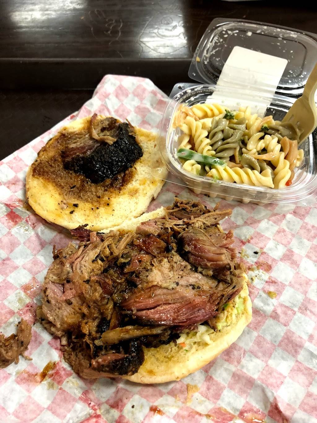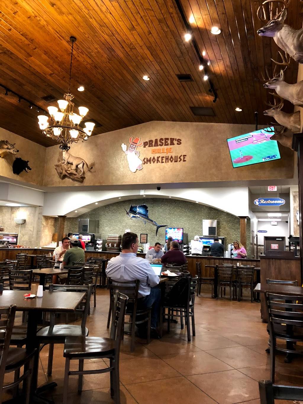 They have a counter to order brisket plates, sandwiches, etc and their dining area features wild game mounts and a giant aquarium which is fun for the kids.