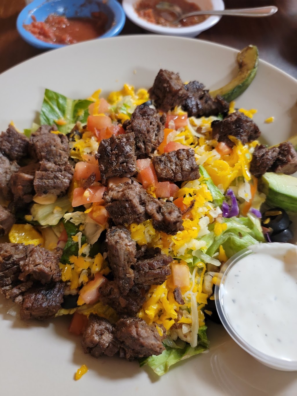 Food was great. The salsa could have used a bit more pepper, but it tasted good. The service lacked a little. Couldn't give you the waiter's name because he didn't introduce himself. He seemed bothered that he had to wait on our table. Another issue was the menu. No descriptions of the dish, or sides available with it. Either you know what it is by reading the name on the menu, or you're just going to hope it's what you think it is. I guess you could quiz your server, but when we did he didn't seem sure about the dish.