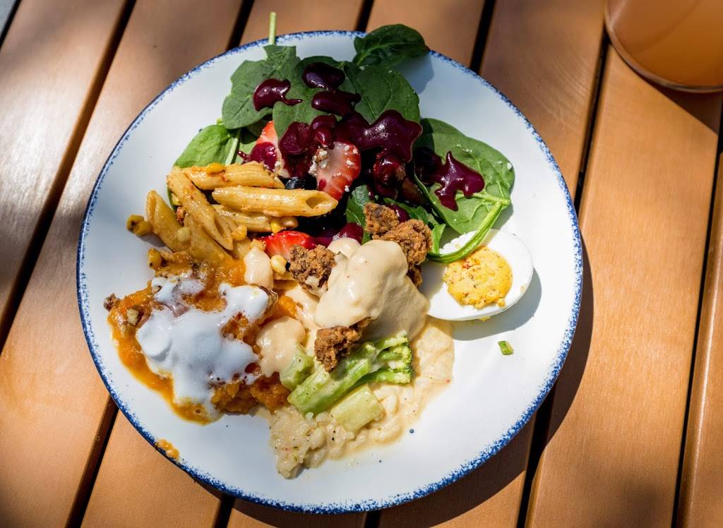 What's better than a brunch buffet spread? Not much. The outdoor area was perfect for enjoying the weather and letting the kiddo play some bags.