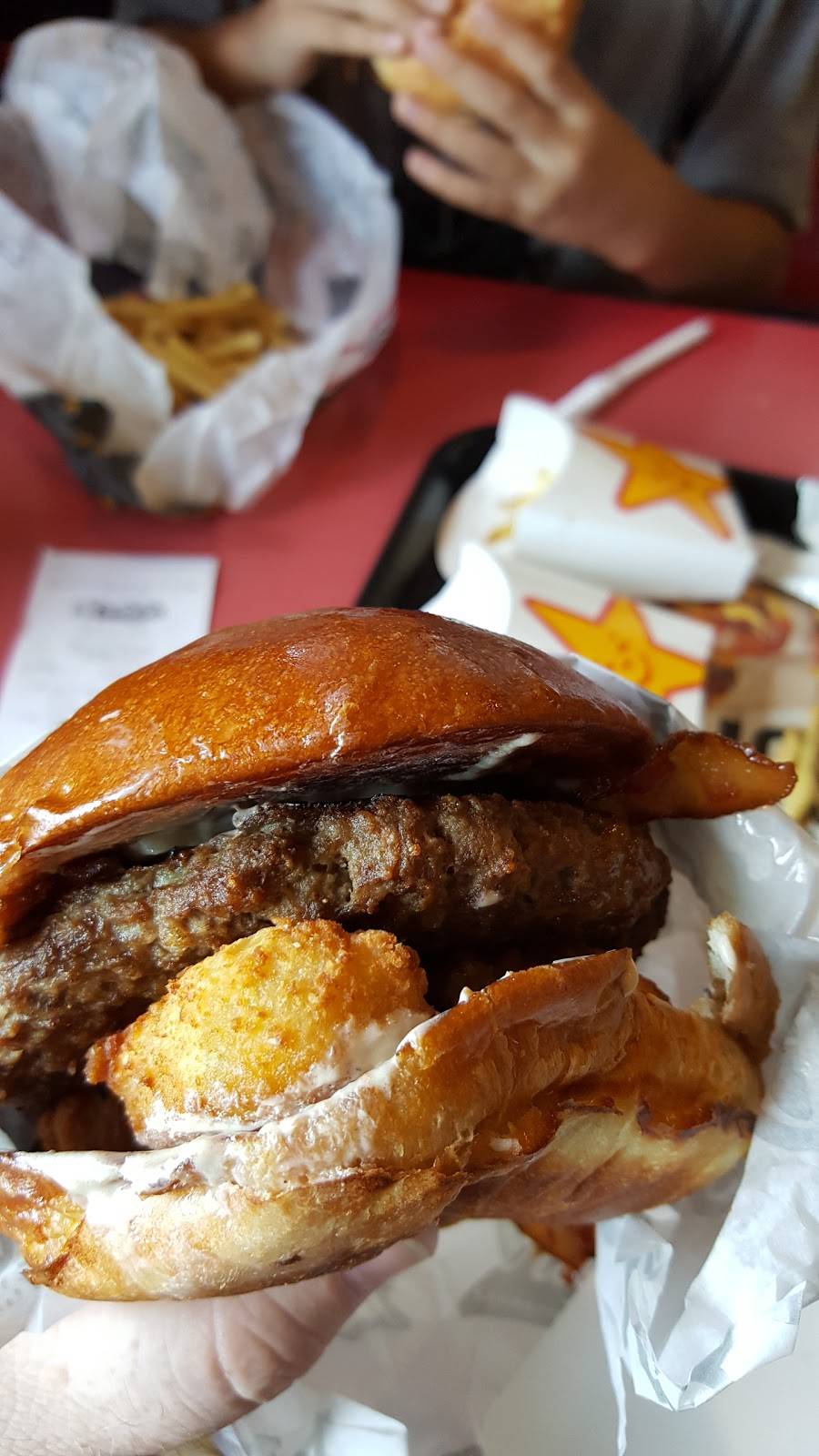 How far would you drive for fresh Biscuits & Gravy? Well, for us about 25+ miles. This is the best Carls Jr, its clean, great location, easy access off I-35 too! They now have a vegan burger too, if your into that sort of thing!