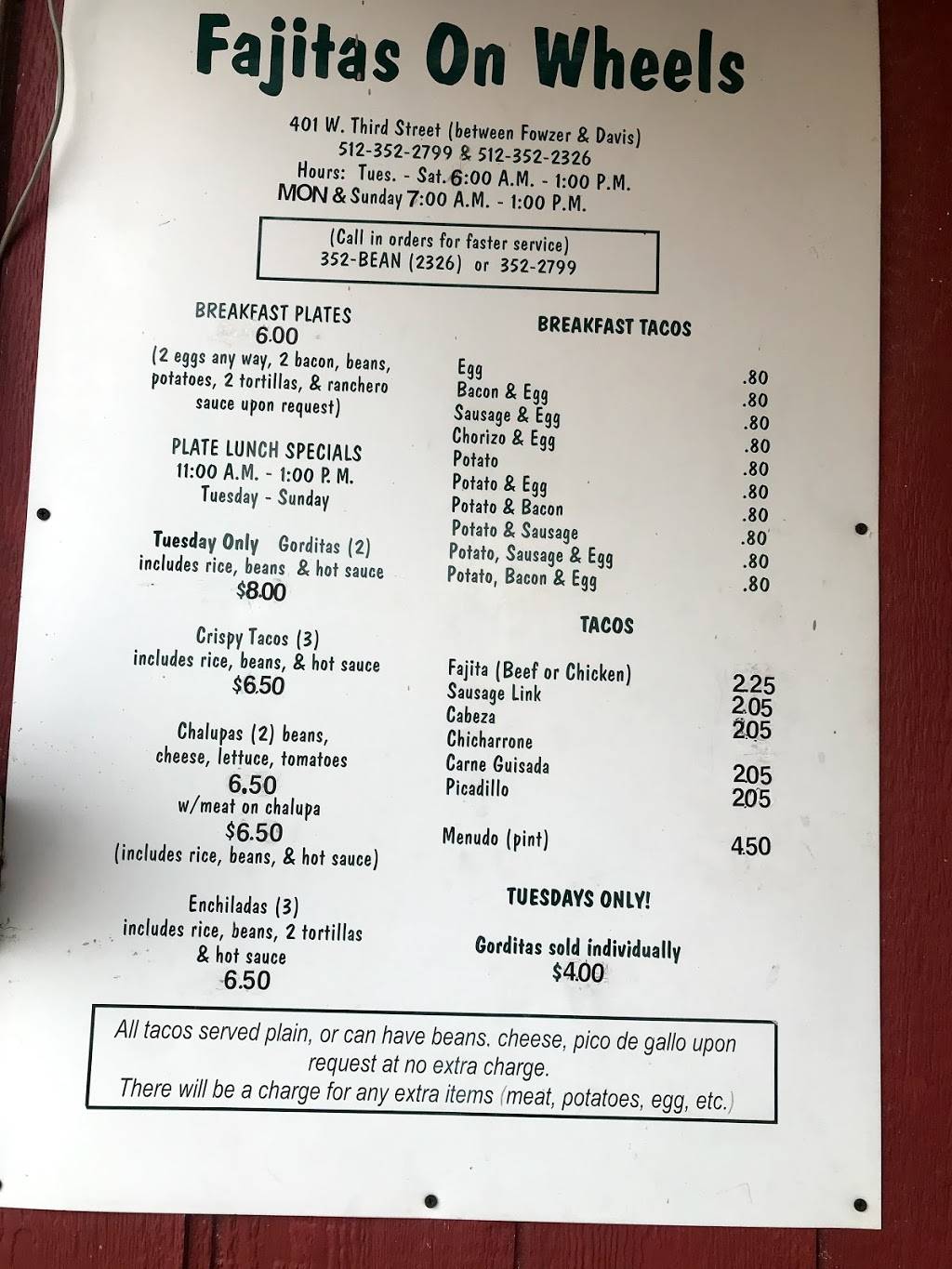 Best breakfast tacos anywhere. Been a customer for over 20 years. Love their food!!!